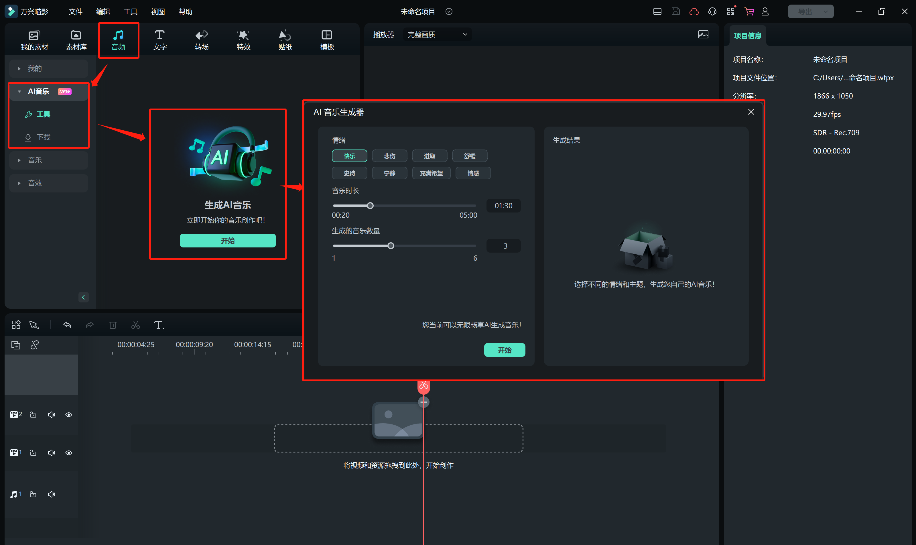 五、添加音频素材