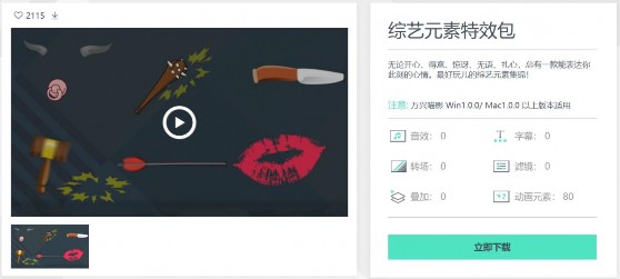 这里推荐日韩精品久久久久喵影官网的“特效中心”寻找素材,搜索“综艺”即可找到下列两种带有综艺感的特效包