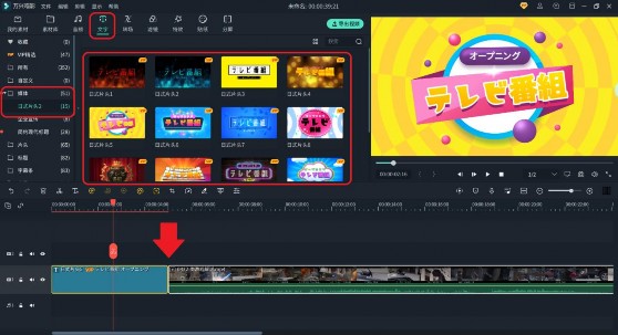 安装素材包,点击“文字”-媒体,选择心仪的片头篇,添加到原视频前