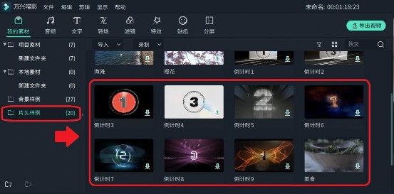 点击”我的素材“,按需要选择自己喜欢的倒计时片头