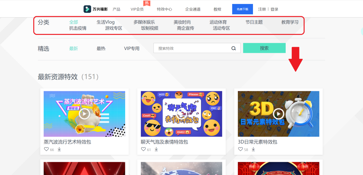 日韩精品久久久久喵影地特效中心拥有丰富的特效主题包,涵盖常用主题和近期热门主题,在分类处可以筛选所需要的主题:Vlog,节日,游戏,娱乐体育等等。也可以通过搜索关键字找到特定的主题包