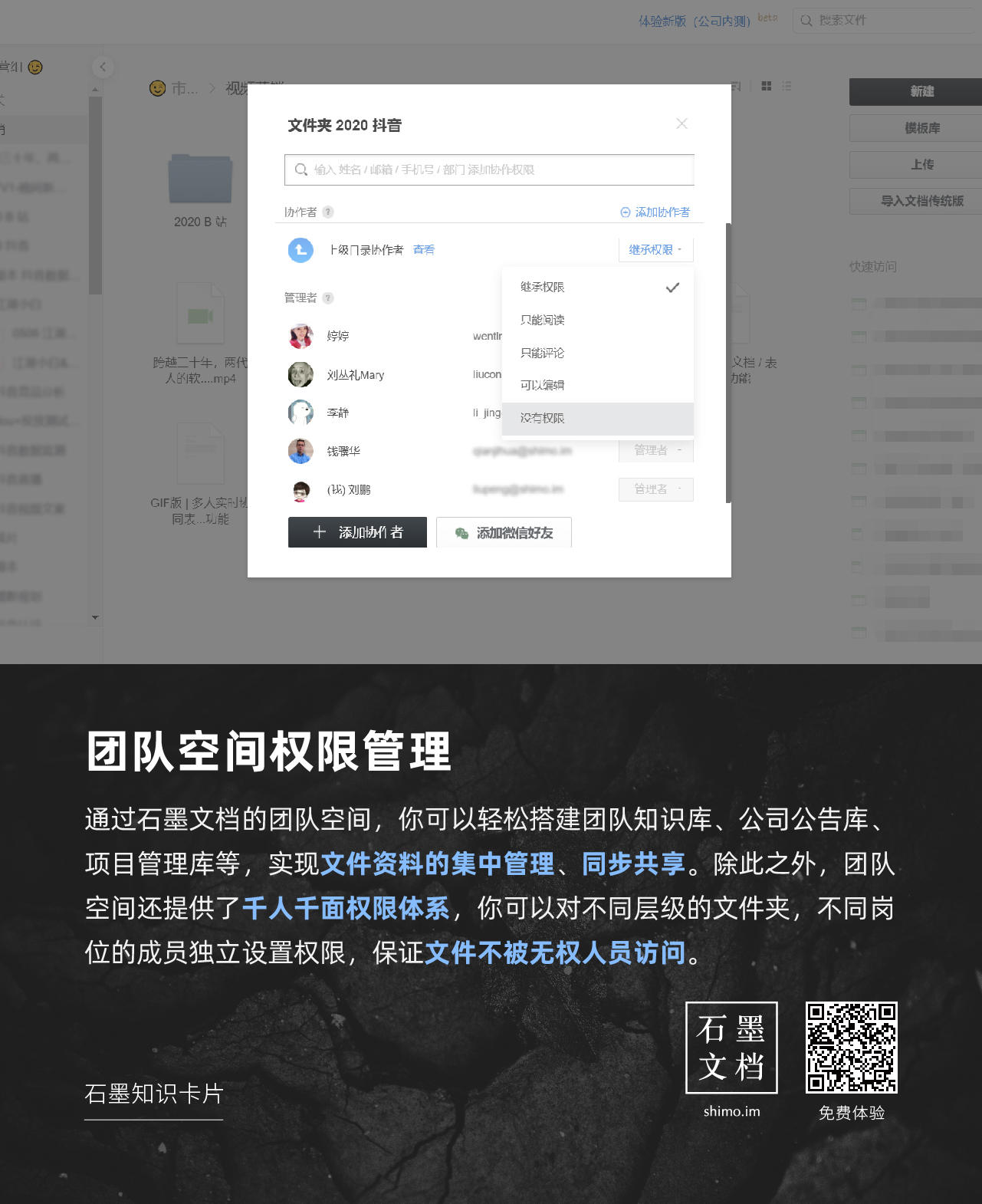 然而这些功能几乎全部属于企业高级版,需要购买后才能使用。值此喵影四周年之际,石墨文档特意推出此次免费试用活动,现在点击链接,即可免费石墨文档的全部高级付费功能,并且一人预约可全团队共同体验。
