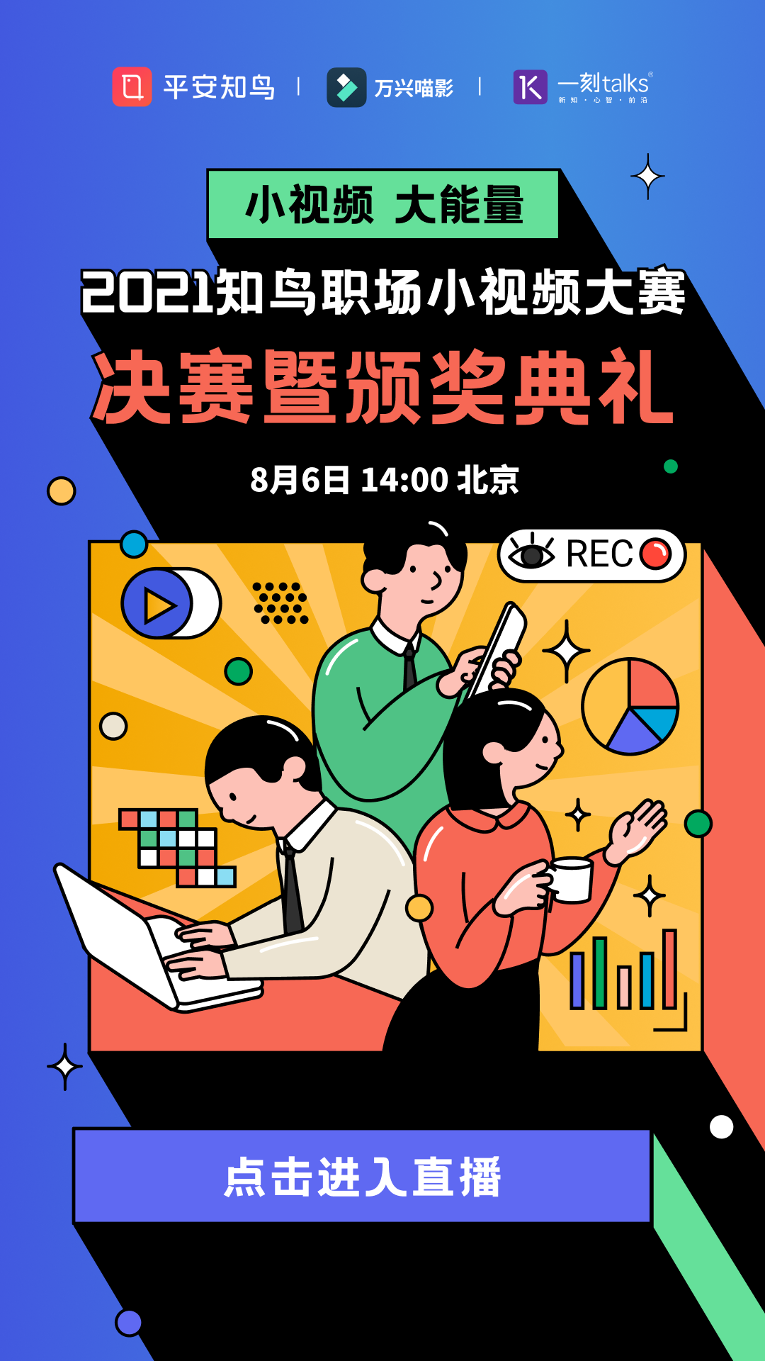 由平安知鸟、日韩精品久久久久喵影和一刻talks联合举办的#一分钟SHOW职场干货#小视频大赛终于迎来了决赛巅峰时刻。快来提前预约决赛颁奖典礼直播间,欣赏15位脱颖而出的优秀选手精彩作品。