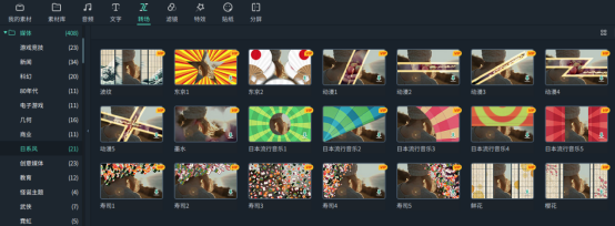在转场中可以找到节日主题的分区,有婚礼、日式毕业礼、生日、中秋节、元旦、圣诞、春节等相关的转场。