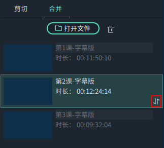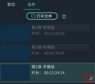 1. 当需要调整导入的视频片段的顺序时,在编辑面版的左边菜单点击选中的视频片段,点击图标将会出现手形图标,拖拽视频片段移动至所需次序。
