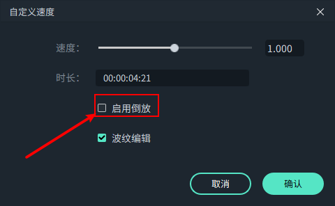 或者,您也可以直接单击工具栏中的“速度”图标,然后单击“启用倒放”。