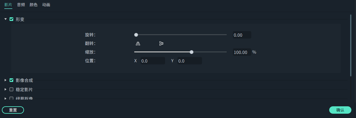 4)在“翻转”区域,单击“水平翻转”图标来从左向右反转视频,或单击“垂直翻转”图标将片段上下翻转。