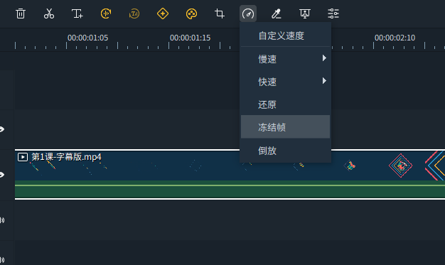 单击工具栏中的“调速”图标,然后选择冻结帧。