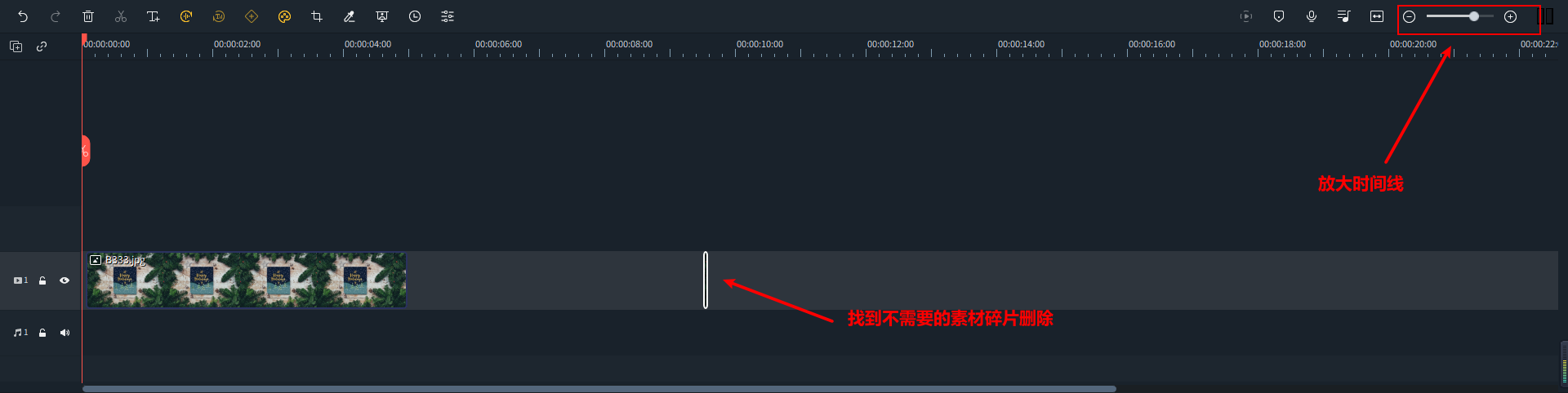 如果您发现输出的视频时长大于实际视频时长,可能是您在时间线上编辑的时候没有将一些不需要的碎片完全删除。 您可以重新打开项目,并且放大时间线删除找到不必要的碎片,手动删除后再次输出。